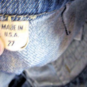 Button closure with zipper. Faux pockets in front and real pockets in the back. Belt Loops.