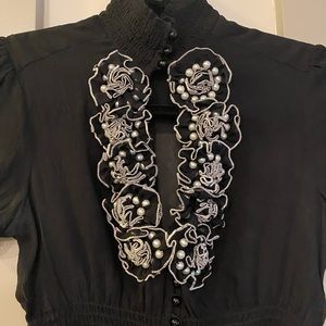 High neck with button up in the front.