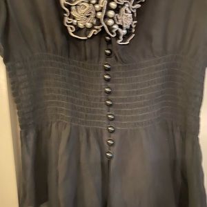 Bebe Silk Chiffon Flower Keyhole Top