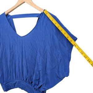 Bebe Silk Top Women Blue Dolman Sleeve Relaxed Flowy Pullover Blouse Size XS