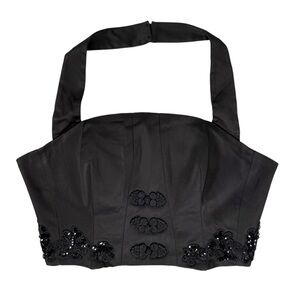 Bebe Size 6 Black Satin Sequin Appliqué Halter Crop Corset Tank Top