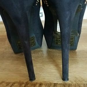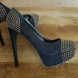 Great used condition. Platform heels. Heel is 5 inches tall. Platform is 1 and 1/4th inches tall. Fabric upper.