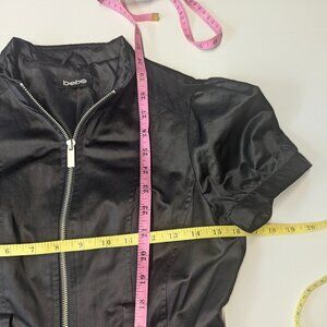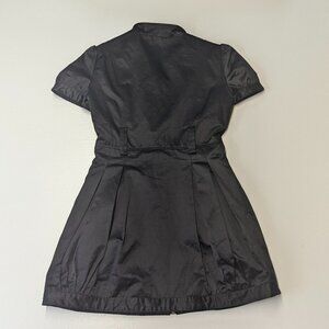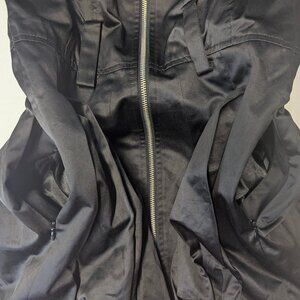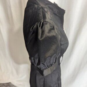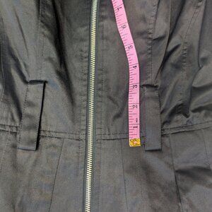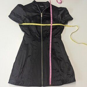 This is for the fashion forward girl, who doesn't mind standing out in the crowd. It's tasteful, but super edgy! Sadly, the size tag is missing, but I'm fairly sure it would be labeled as "small." Please see measurements, though, because it's not stretchy. My model, Torsola, does keto to maintain her figure, and this fits her perfectly. The sleeves are puffed, a zipper runs the entire length of the dress, and there are 2 zippered pockets (picture 13), a great bonus in my book. There are pleats and seams all over the place for added detail. I don't know if it had a belt originally, but it's got wide beltloops. I think a silver chainlink belt would look good, but a creative person will come up with the perfect solution. It's in excellent shape, no flaws other than the size tag being gone and the possibility that it once had a belt.