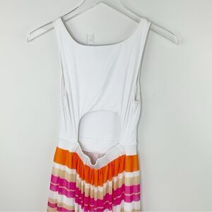 Bebe Sleeveless Tank Dress Hi-Low Bright Orange Pink Striped Chiffon Skirt XS