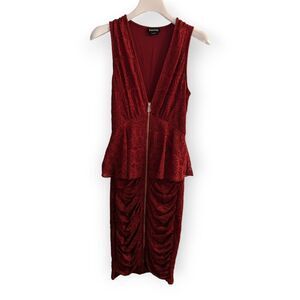 Bebe Slinky Lace Peplum Zipper Ruched Dress Plunging Neckline Size Small