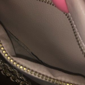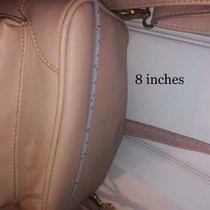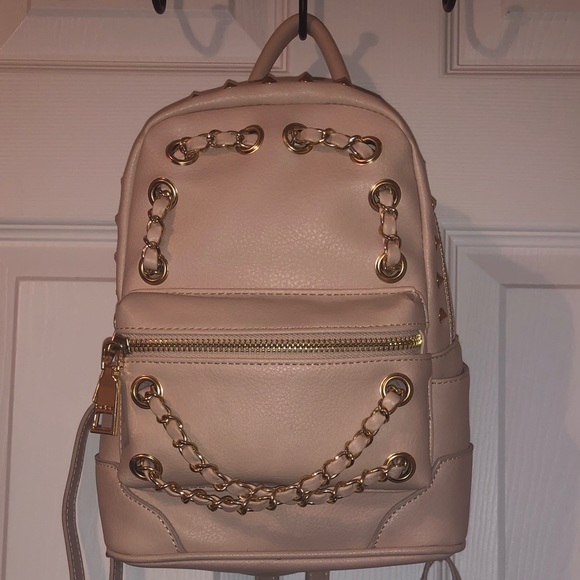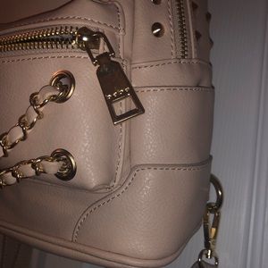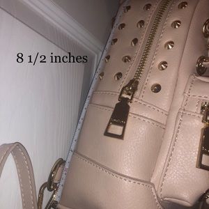 I hate to part with this bag, but I don’t use it :( it’s like a pale pink/blush color, studded, with chains and of course adjustable straps.. minor wear and tear and the inside pocket is slightly torn.