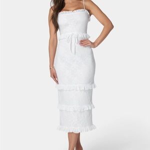 Bebe Smock Ruffle Maxi Dress