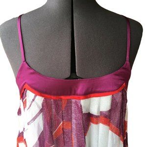 Bebe Spaghetti Strap Top Shimmer White Purple Red S Sheer Layered Baby Doll