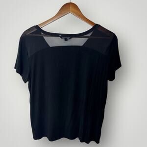 Bebe Sport Black V-Neck Rainbow Logo Tee Mesh Back Women's Large