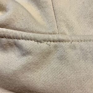 Bebe Sport Cream Hoodie Rainbow Sequins Size Large. There are some loose threads on back of sweatshirt under hood. Please see the photos. Measurements in photos.  In good, pre-loved condition. Comes from a smoke free home.