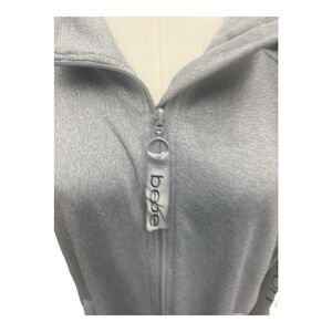 Bebe Plus Size Gray Full Zip Logo Athletic Jacket. Size 1X. Measures 18” pit to pit and is 25” long from shoulder to hem. There is some slight peeling on one sleeve but it’s not noticeable on sight. You need to look for it