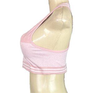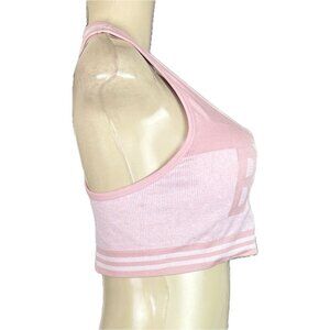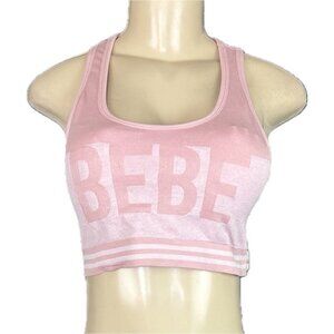 Bebe Sport L Pink Logo Ribbed 4 Way Stretch Removable Pads Racerback Sports Bra