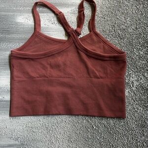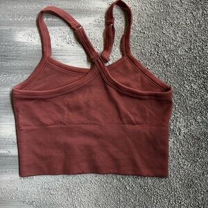 Stylish rust ribbed tank with racerback design.