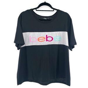 Bebe Sport Women’s Colorful Logo Short Sleeve Colorblock Boxy Tee 2X & 3X