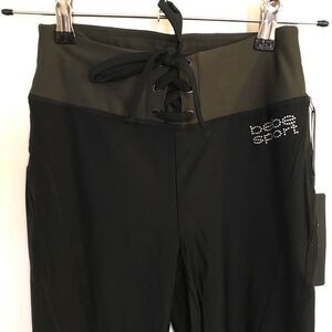 Bebe Sport Lace Up Logo Colorblock Capri Leggings