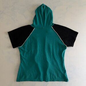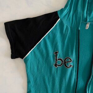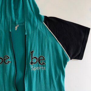 Bebe Sports Full Zip Hooded Baseball Style Short Sleeve Top