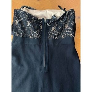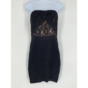 Bebe Strapless Lace Bandage Dress Sz M Rocker Goth Mini MIDI Formal Cocktail