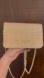 Trendy Bebe crossbody bag with a woven straw texture. Features a chic chain strap. Perfect for versatile and everyday wear. Has a gold tinsel woven into straw you can best see in the video.