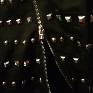 This mini dress is adorned with silver studs, and has an adjustable two way zipper! You can zip the zipper up or down depending on how much skin you want to show. Worn just a handful of times