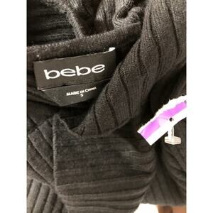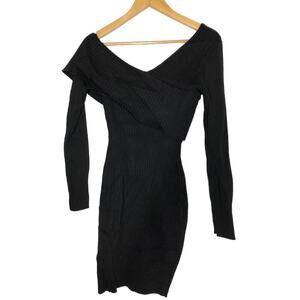 Bebe Sweater Dress Ribbed Knit Asymmetrical Off The Shoulder Bodycon Black NWT S