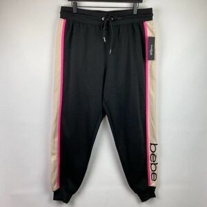 Bebe Sweatpants Womens 2X Black Pink Jogger Pants Pockets Casual Ladies