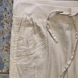 Bebe Sz 2 Cream Linen Blend Pull On Casual Cargo Pants Drawstring Waist Pockets