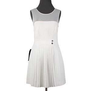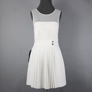 Bebe Sz 8 White Heaven Accordion Pleat Mesh Polyester Viscose Dress
