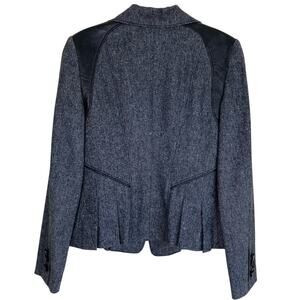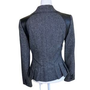 Bebe Sz XS Y2K Wool Silk Blend Tweed Blazer Fitted Feminine Leather Panels Sexy