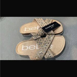 Step out in style with these chic Bebe sandals. Featuring a trendy tan color and studded design, these sandals are perfect for any casual outing. Enjoy comfort and fashion combined.