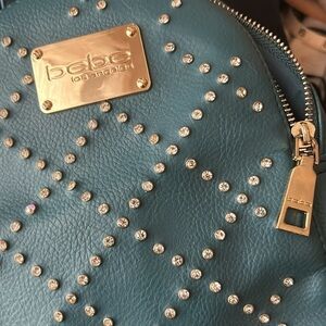 Bebe Teal Rhinestone Backpack Purse