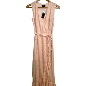 Bebe Textured Ruffle Surplice Maxi Dress Peach Pink NWT Size 2 | Wedding Guest S