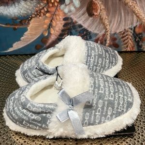 Bebe Toddler girls slippers Size L 9/10 Plush white grey with blue bow NWT Clean