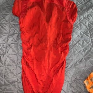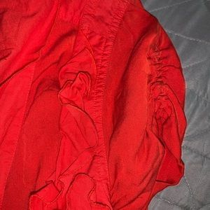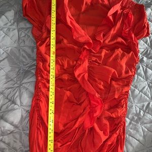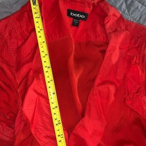 Bebe Top with ruffles and rushing. Excellent condition. Looks super cute on, I always get lots of compliments on this top :)