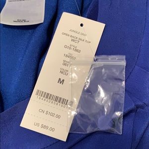 Royal blue 100% silk top with a semi-open back.