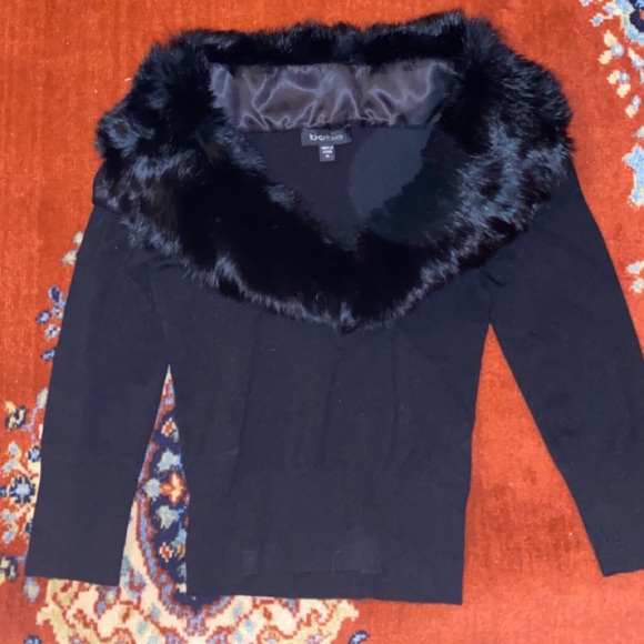 Off the shoulder Bebe black fur top. Feel free to offer and ask questions! :)