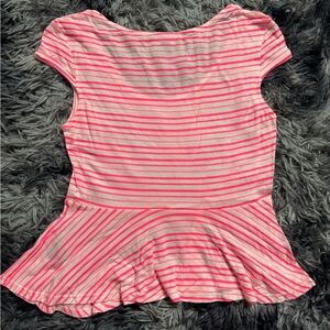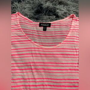 Bebe Top ✨ size small ✨ hot pink & white ✨ has a couple small blemishes on the back of the shirt. - see photos