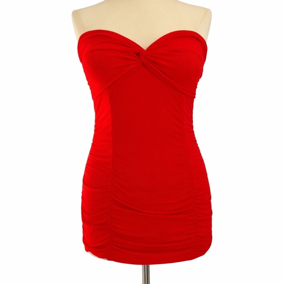 This strapless top is super comfy. It is ruched and fits nicely. In excellent condition.