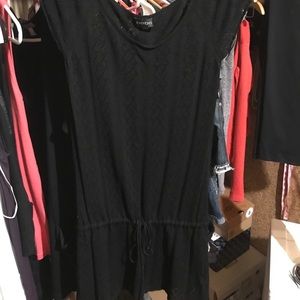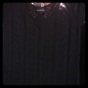This Bebe top is a lightweight summer knit, it is black and ever so lightly sheer, it has a lower drawstring waist and is in excellent condition. It can be worn over skinny jeans or leggings, as a mini dress. It does run on the smaller size in my opinion more like a medium!