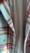 Chic turquoise coat with brown plaid design. Double-breasted style.