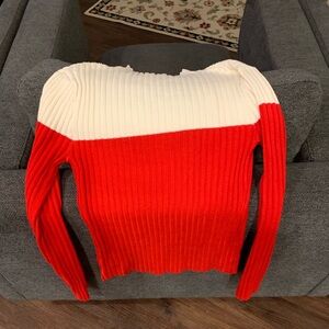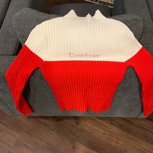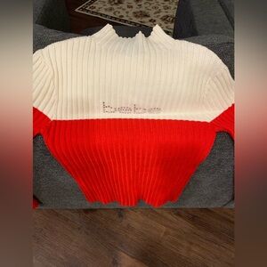 Bebe Mock Neck sweater with jewels gently worn size small, two tone color ted and cream