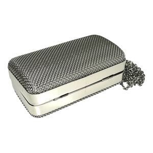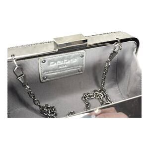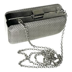 Bebe USA Metal Frame Fashion Clutch HANDBAG Purse Silver Shoulder Chain Strap