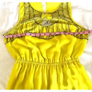 Bebe VTG Y2K Yellow Cage Beaded Sleeveless Mini Cocktail Dress Beaded Chain sz M