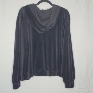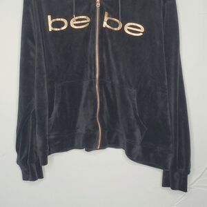 Bebe Velour Hoodie Size 3X Metallic Spell Out Zip Front Soft Black Jacket Y2K