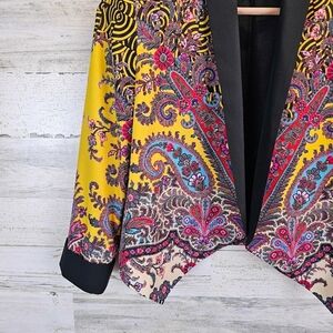 Bebe Vibrant Paisley Open Blazer Jacket Size XS Black Artsy Eclectic Boho