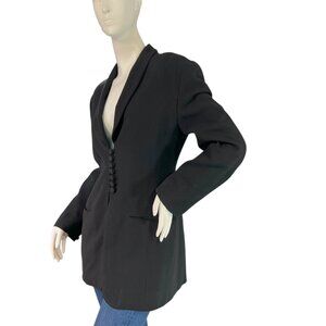 Bebe Vintage 90s Black Cinched Waist Long Blazer Wool Blend Made in USA, Size 4