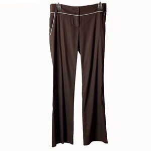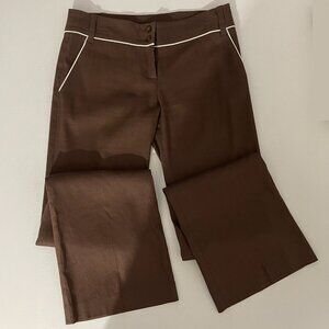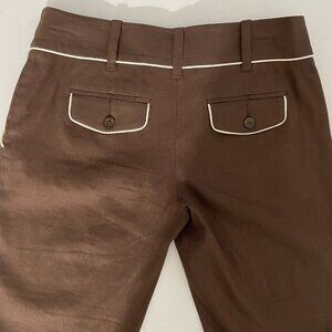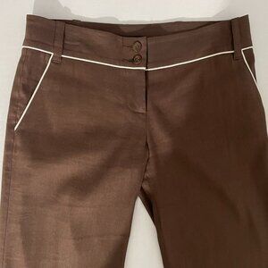Bebe Vintage Linen Pant Suit | Dark Rum/Brown w/White Trim & Belt | EUC