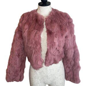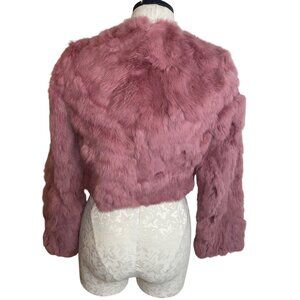 Bebe Vintage Womens Jacket Size XS Pink Satin Long Sleeve Rabbit Fur Casual