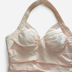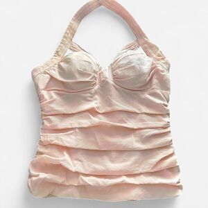 Bebe Vintage Y2K Pink Silk Bustier Halter Ruched Pleated drape Top | Size Small