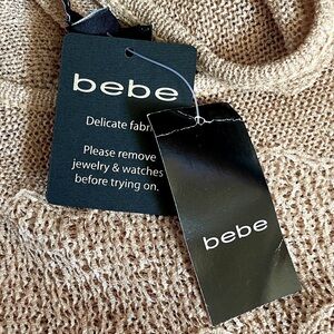 Bebe Wave Stitch Boho Knit Tan Boxy Oversized Layering Sweater Size S NWT