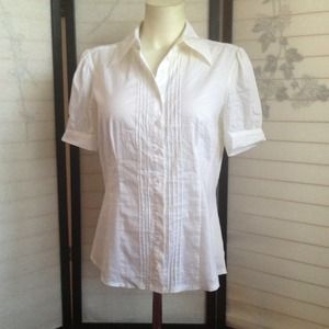 A classic button up top with pleats in the front. Button line the front. Perfect to wear a sweater beat over or add a pencil skirt for the office